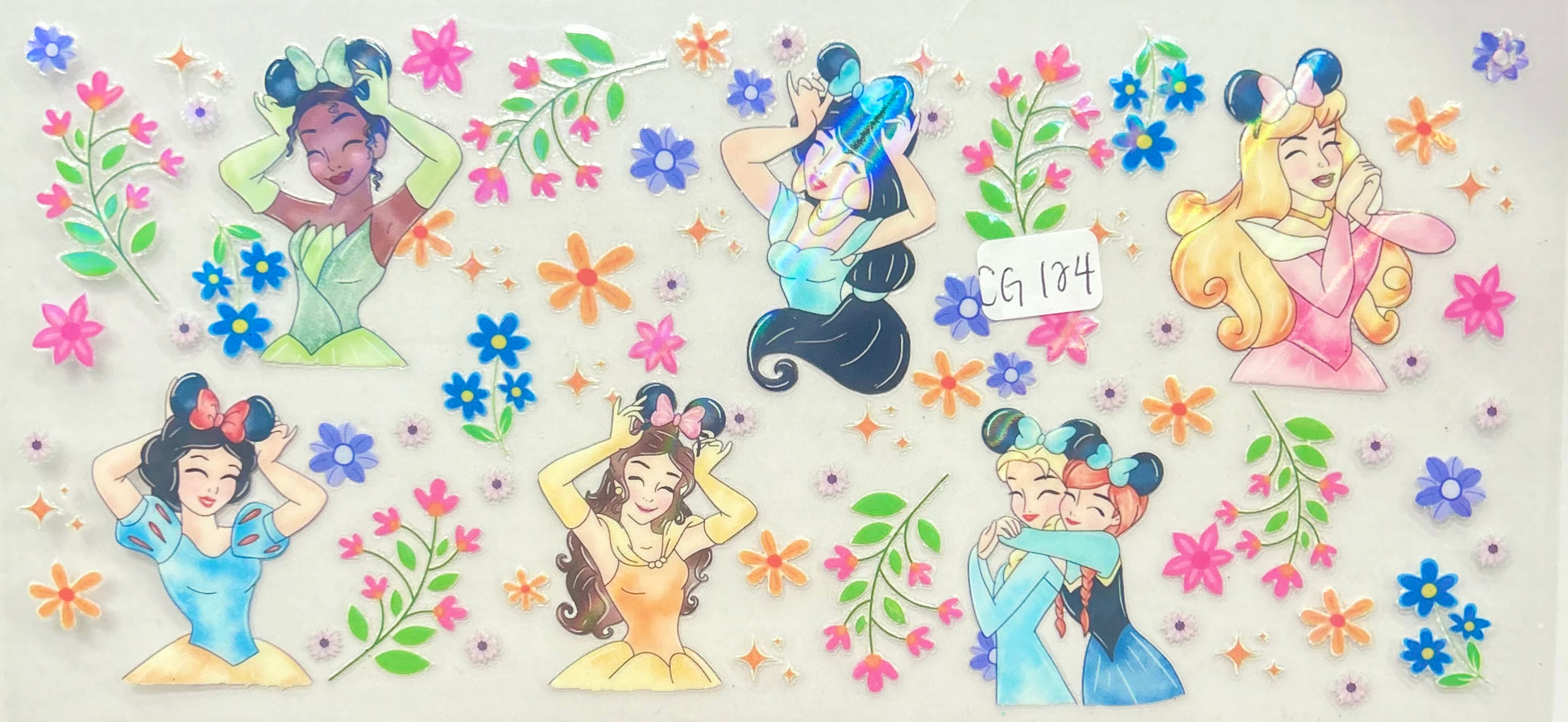 HOLOGRAPHIC Princess Snow White Aurora Belle Tiana Elsa anna Jasmin