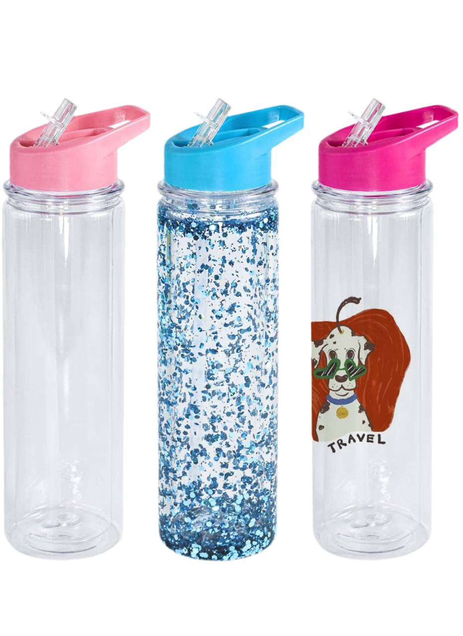 Double-walled design with suspended, medium or fast glitter flow effect